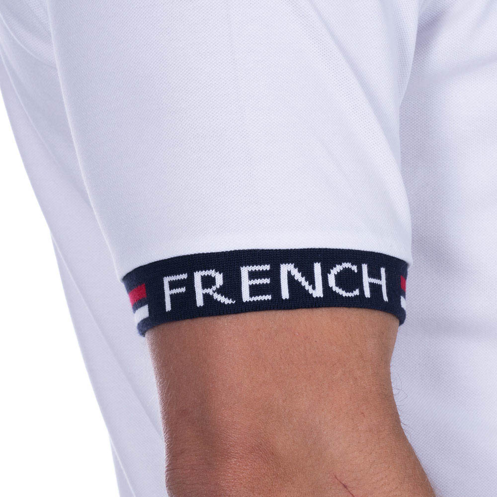 Optez pour un total look French Rugby Club avec ce polo en coton piqué. Coté style, ce modèle se pare de belles broderies sur la poitrine ainsi que de ribs de manches élastiqués tricolores avec une inscription FRENCH.