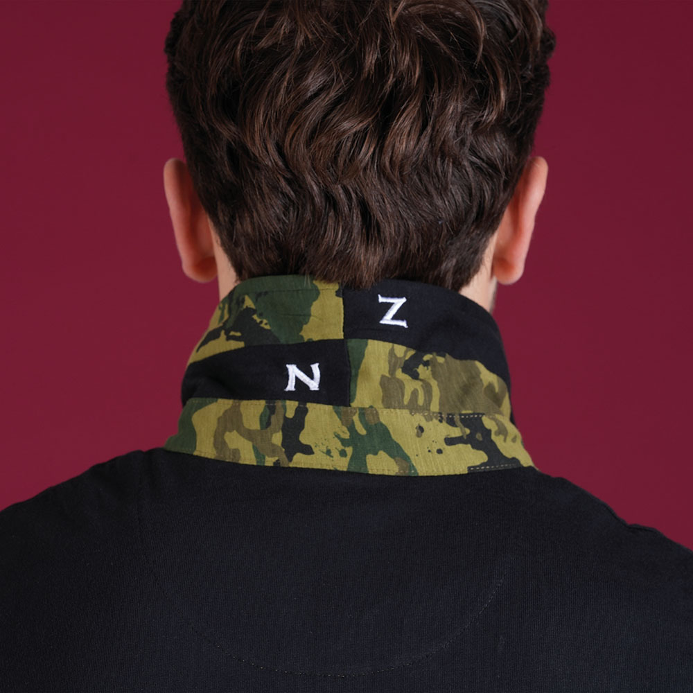 Revers du col et patte de boutonnage contrastés