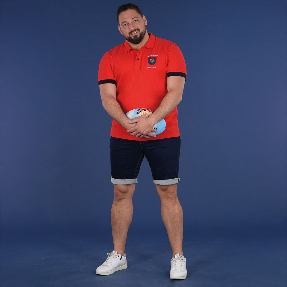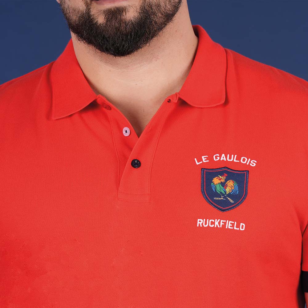 Ce polo à manches courtes se distingue par son rouge éclatant et ses finitions contrastées bleu marine au niveau des manches. Dans le dos, il arbore fièrement un grand coq multicolore accompagné des inscriptions « LE GAULOIS ». Sa coupe droite et sa matière en coton piqué assurent confort et résistance, parfaits pour un usage quotidien comme pour afficher un style affirmé aux couleurs du rugby et de l’héritage gaulois.
