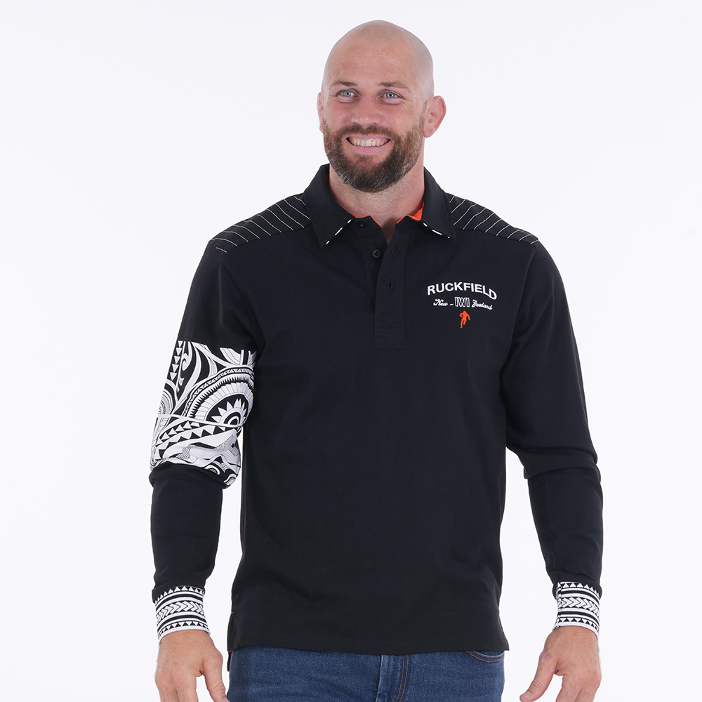 Tu veux une pièce de caractère dans ton dressing ? Alors, opte pour ce polo New Zealand et sa manche droite imprimée maori. On retrouve aussi une broderie Ruckfield sur la poitrine. Vous pouvez le porter avec un jean brute et une paire de baskets.