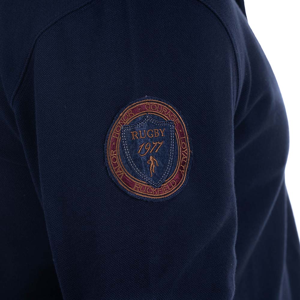 Ce polo est idéal pour l'arrivée de l'hiver. Confortable et élégant, il est vêtu de touches de marron au niveau des manches et du col. On retrouve une broderie sur la poitrine ainsi que dans le dos. Tendance avec un jean.