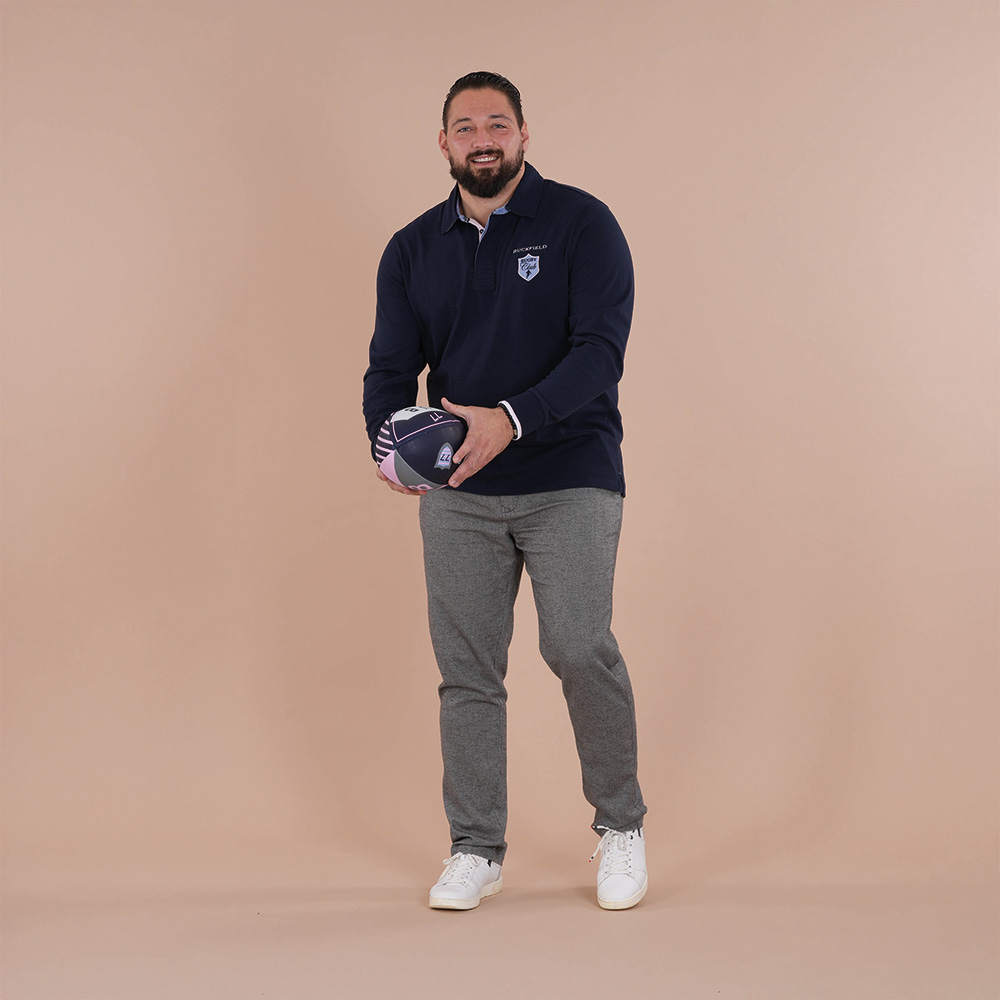 Les couleurs du thème sont reprises dans les détails soignés de ce polo !