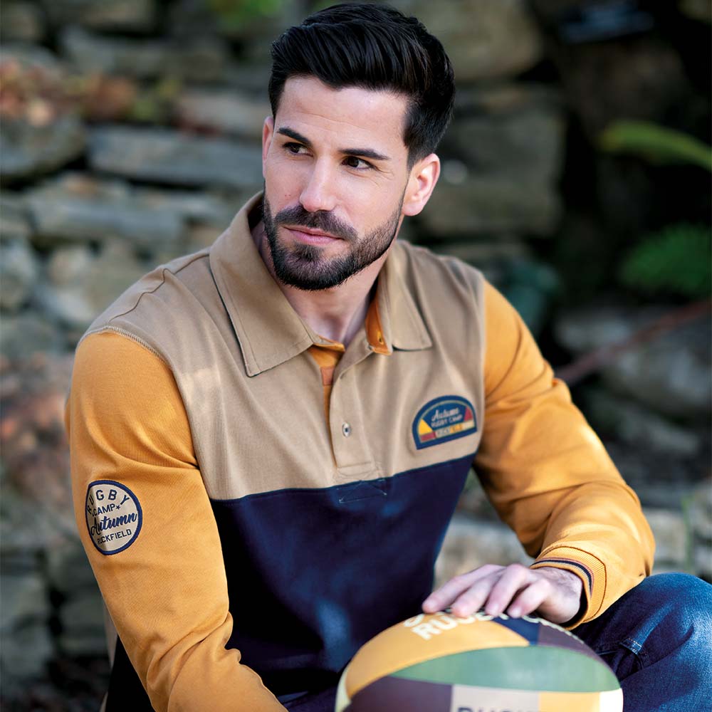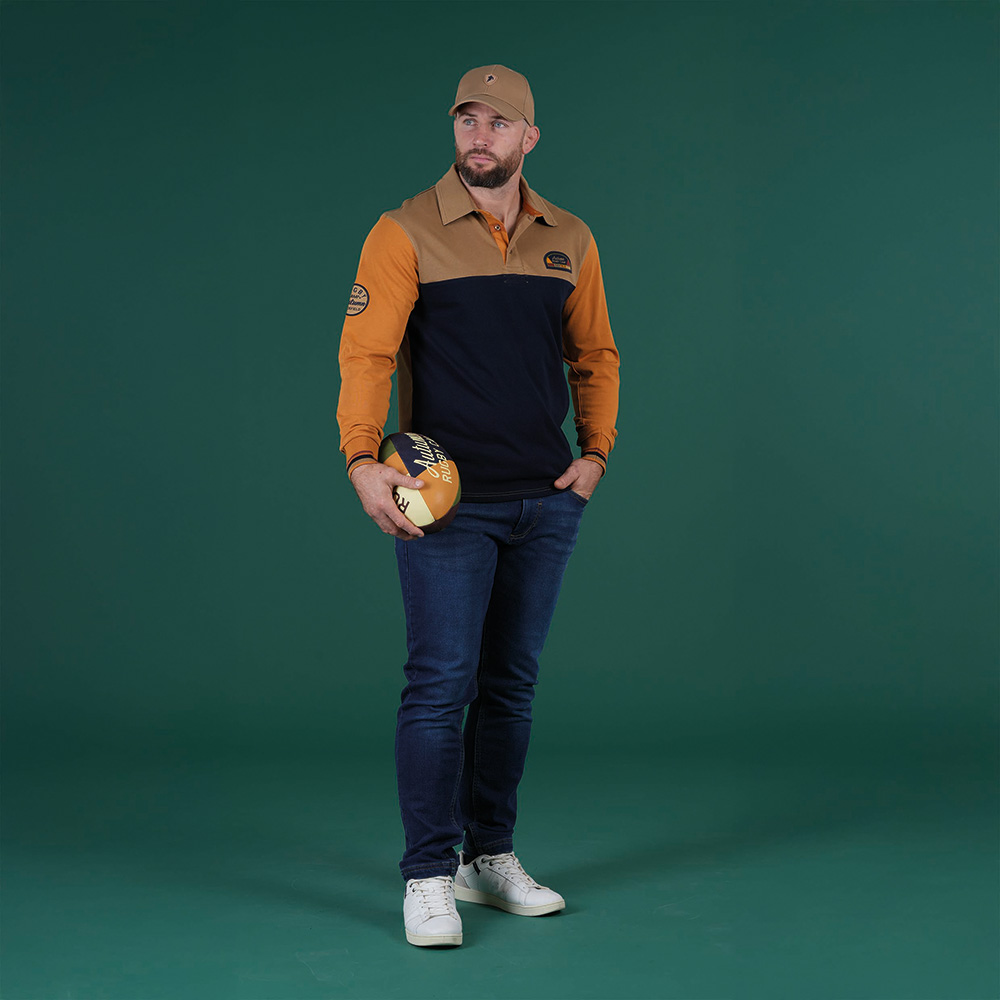 Inspiré des codes du rugby classique, ce polo manches longues affiche une belle alliance de caractère et d’authenticité. Avec son jeu de couleurs contrastées marine, camel et moutarde, il s’impose comme une pièce forte de la collection Autumn Rugby Camp.