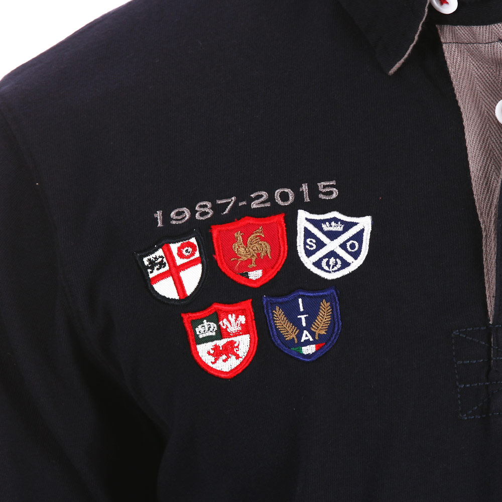 Ruckfield revisite avec style l'incontournable polo rugby. Ce polo manches longues en coton jersey est revu et corrigé par l'actualité dans le monde du rugby avec les blasons des grandes nations, des rayures tricolores sur les ribs et la magnifique broderie Road to England dans le dos. Conseil de style : on portera le col relevé pour mettre en avant la broderie qui personnalise le col.