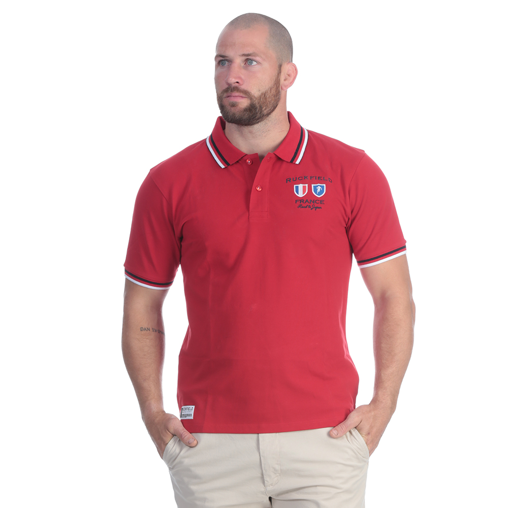 La Coupe du Monde de rugby approche à grands pas ! Pour l'occasion, découvrez ce magnifique polo manches courtes en coton mélangé rouge avec ces broderies poitrine et dos.