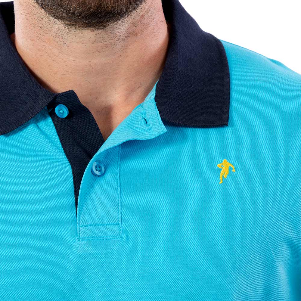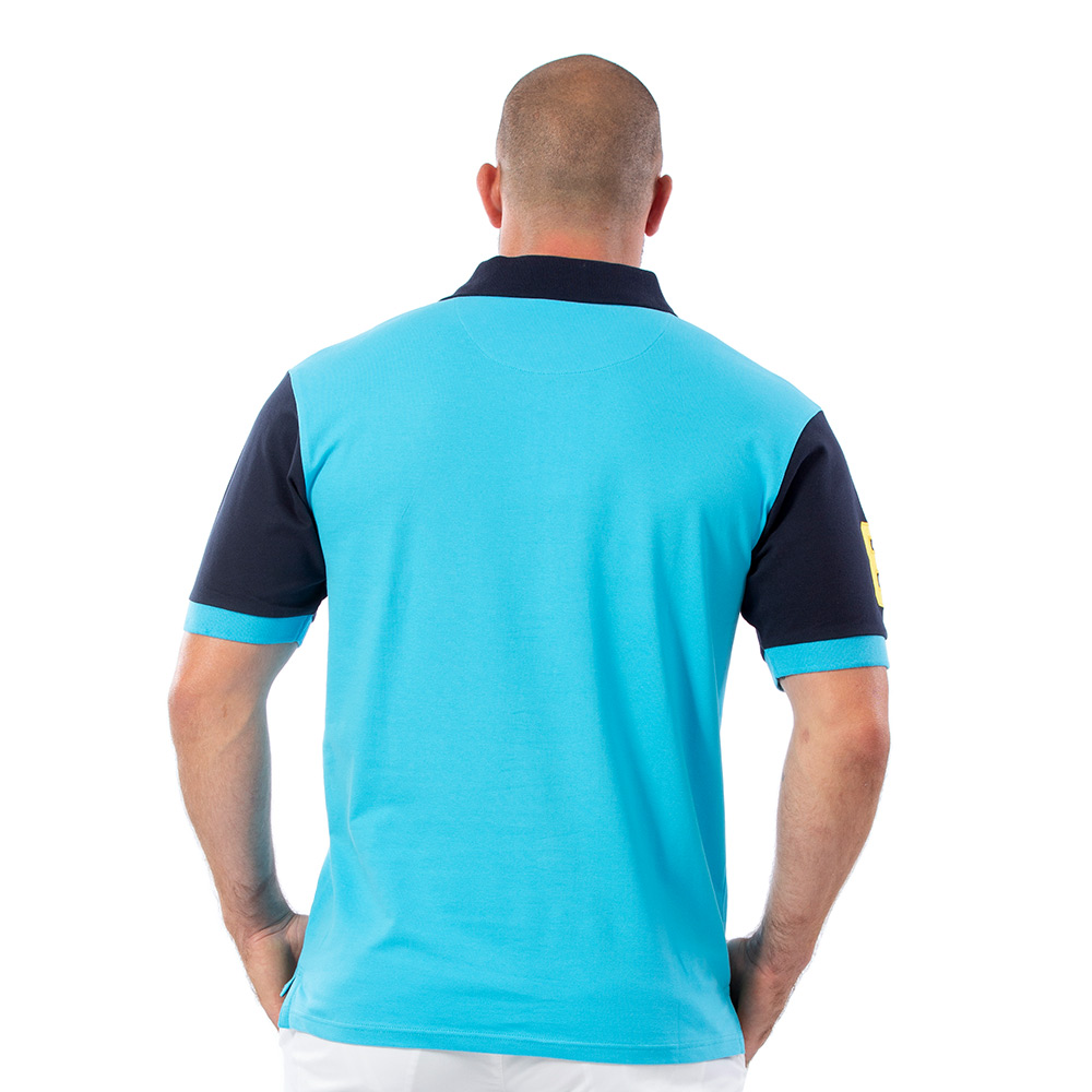 Ce polo bicolore à manches courtes cultive une allure de rugbyman !