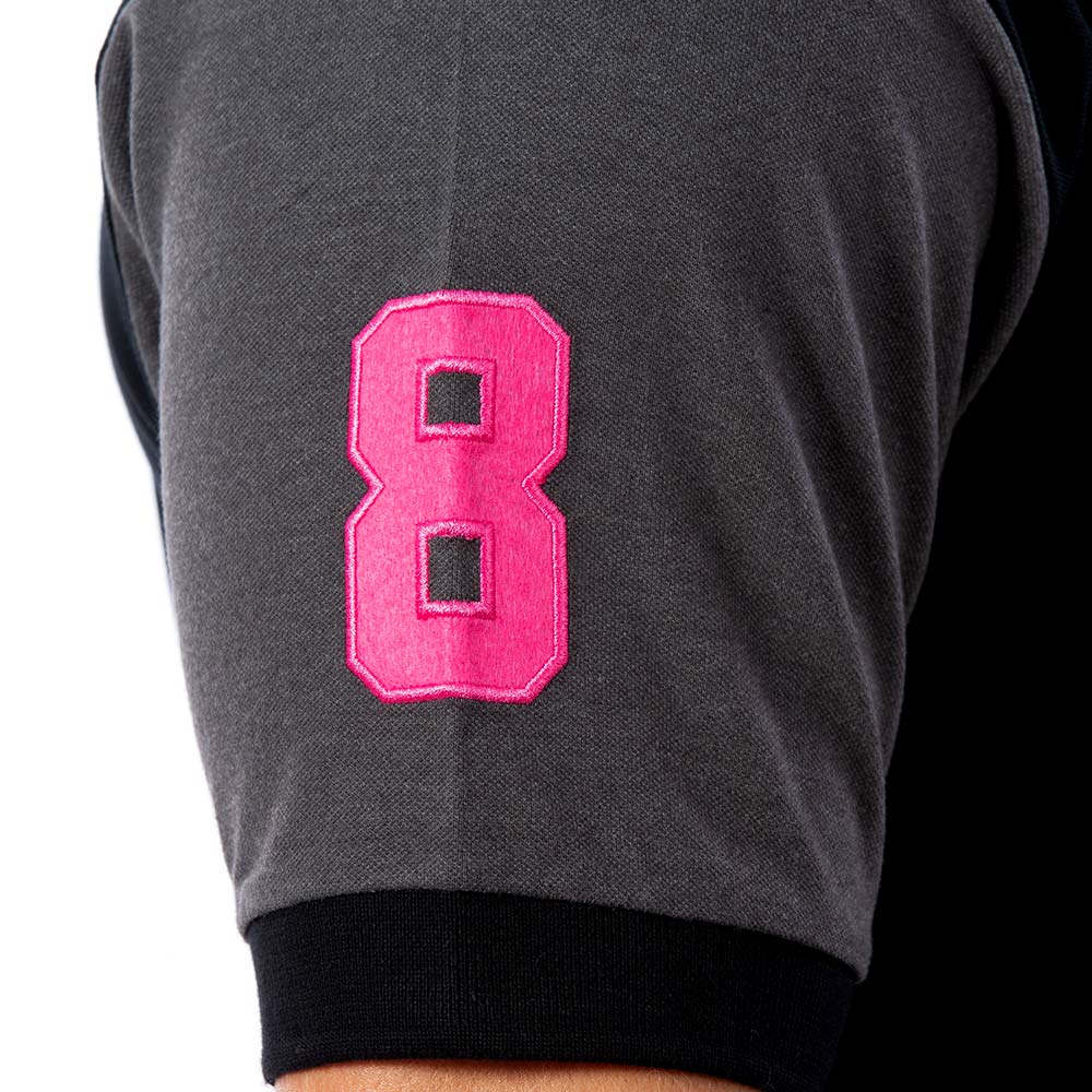 Retrouvez le numéro 8 brodé en rose sur la manche droite et la silhouette de Chabal brodée en rose sur la poitrine. Il mettra votre silhouette en valeur et il s'accorde parfaitement avec un pantalon chino ou un jean.