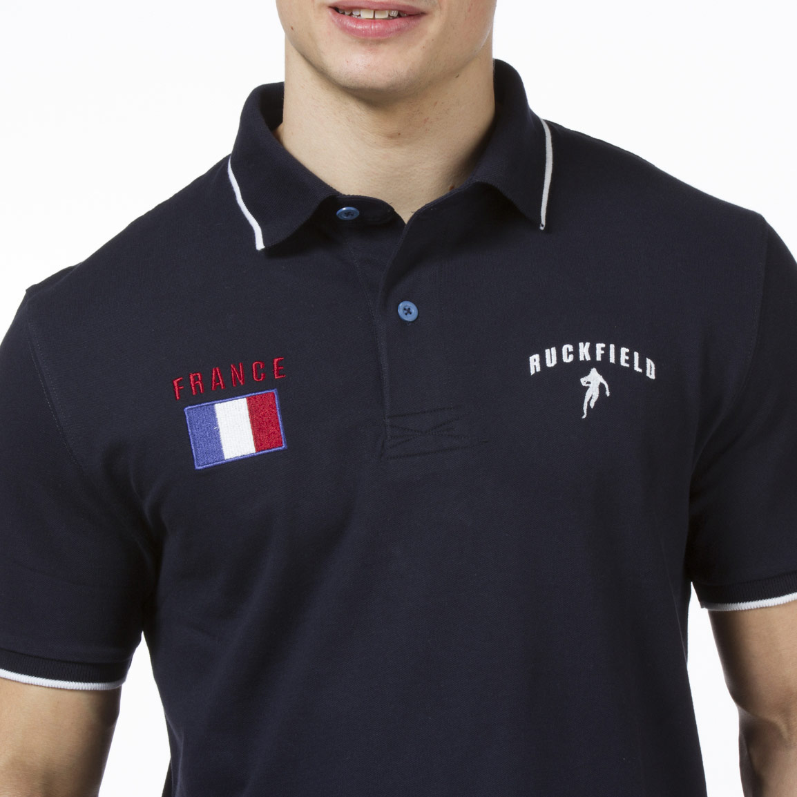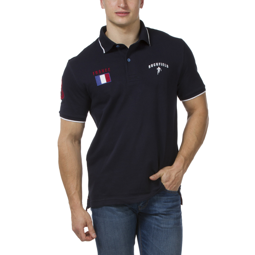 Un polo de rugby bleu marine pour les véritables supporteurs de rugby français! Une pièce qui fera des envieux avec son drapeau brodé sur torse, sa coupe droite et ses fentes latérales en twill.