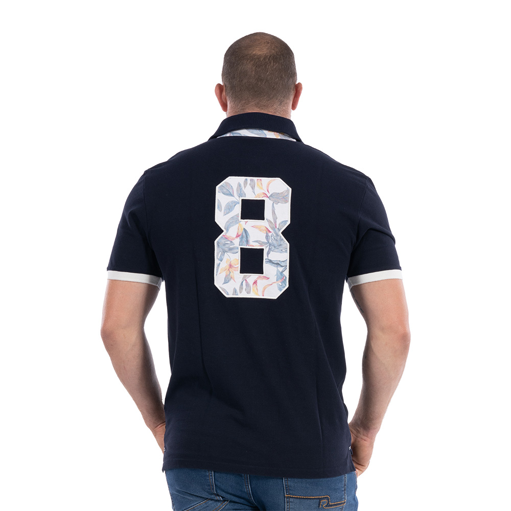 Ce polo est 100 % coton organique issu de l'agriculture biologique. Avec sa broderie Palm Beach au niveau de la poitrine, son 8 dans le dos à motif feuillage et son col boutonné c'est le combo parfait pour allier simplicité et originalité. Sa patte de boutonnage est agrémentée de trois boutons.