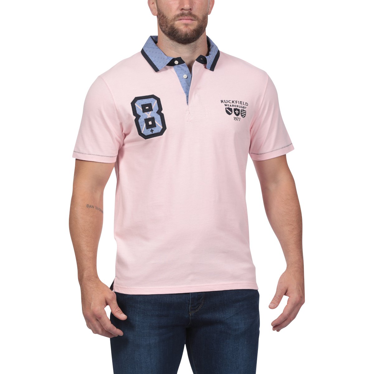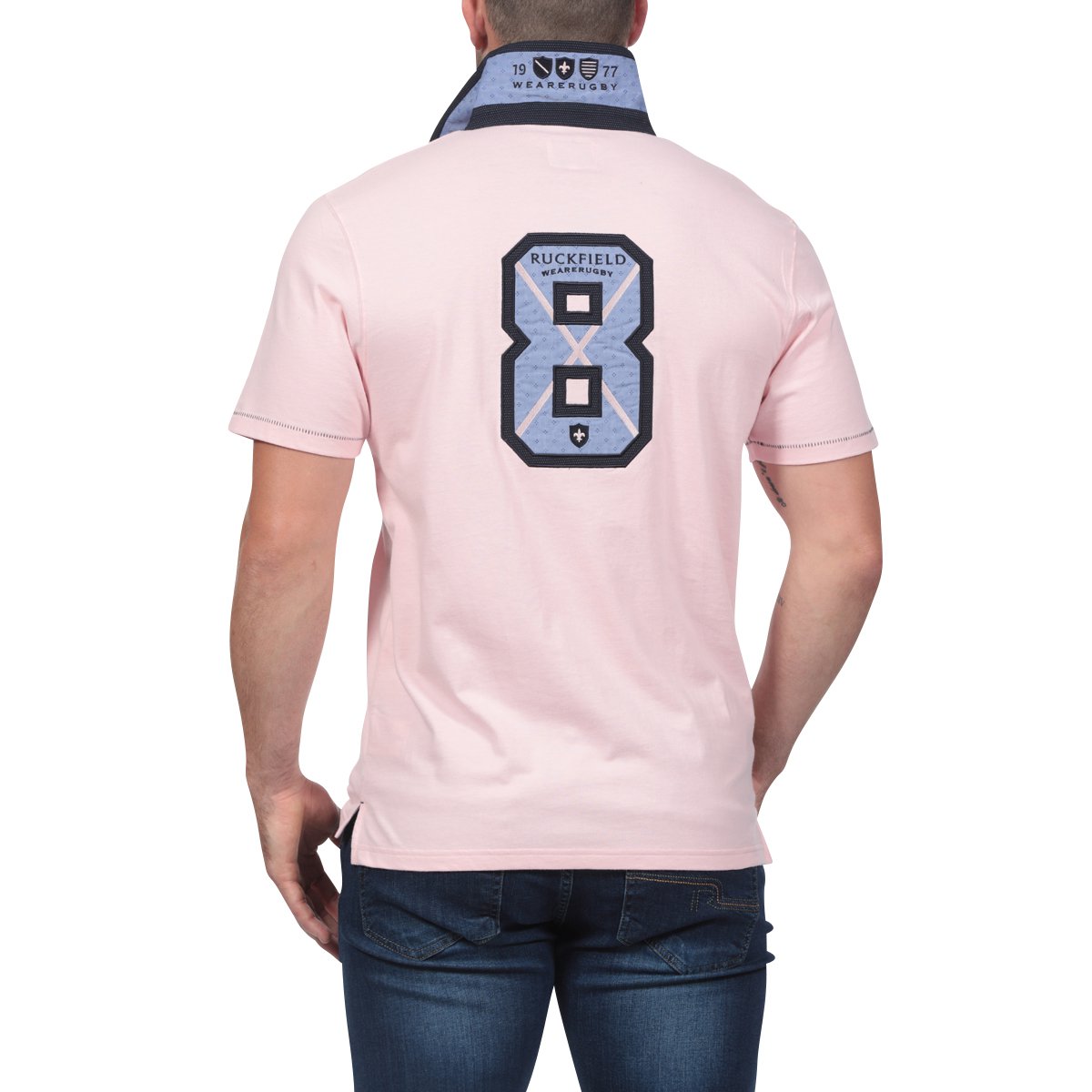 Un essentiel du thème We are Rugby, le polo rose numéro 8 est un indémodable ! Arborez fièrement les couleurs de Sébastien Chabal et de Ruckfield avec ce polo en coton jersey aux nombreux détails, notamment deux belles broderies sur la poitrine et dans le dos, ainsi qu'un col contrasté en tissu imprimé.