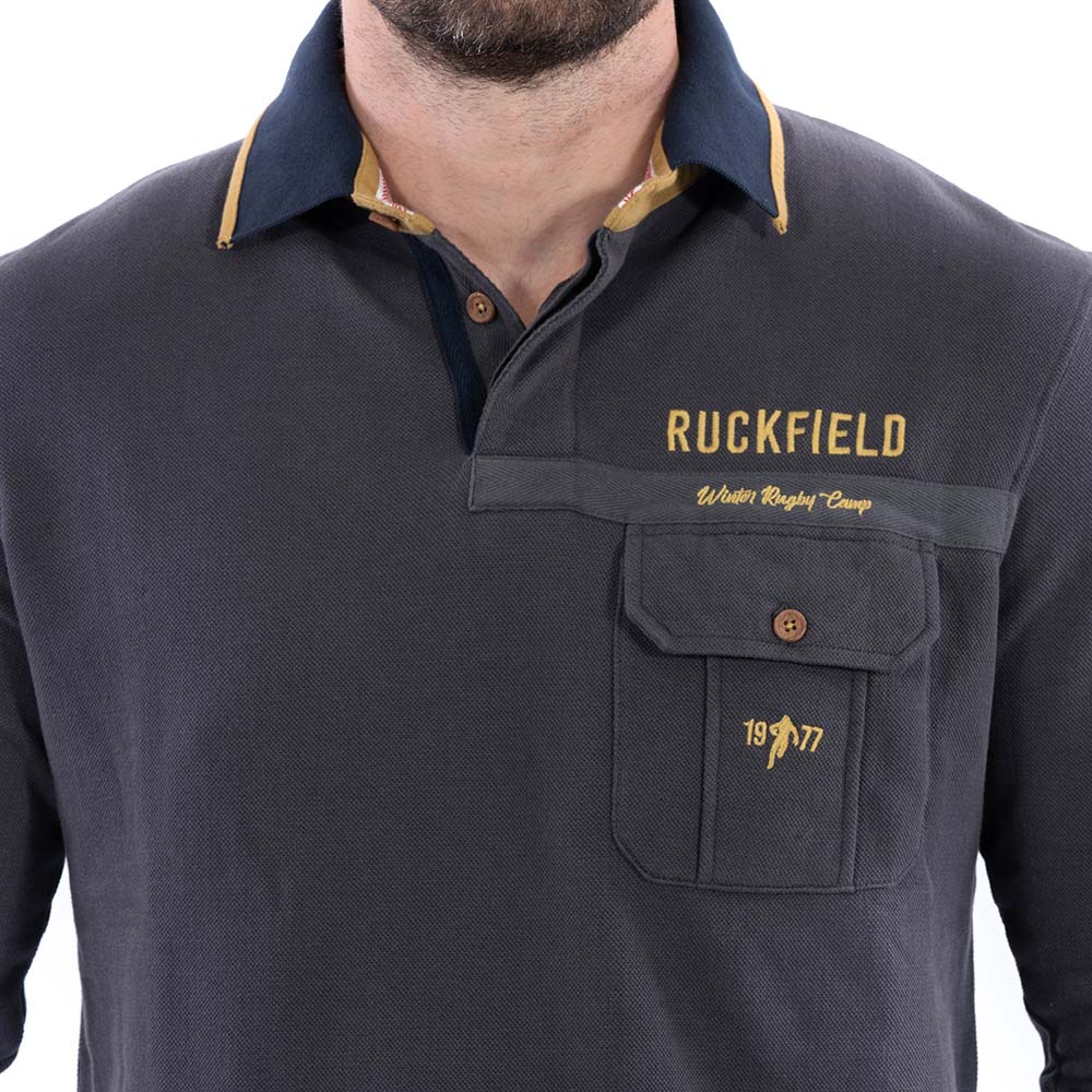 Polo Ruckfield à manches longues Rugby Camp gris foncé
