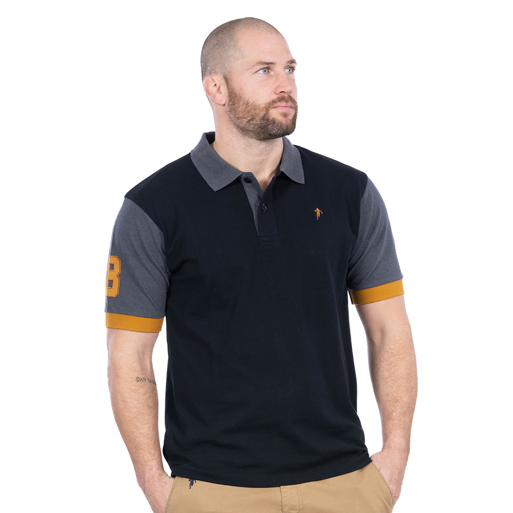 Polo N°8 Ruckfield bicolore noir à manches courtes