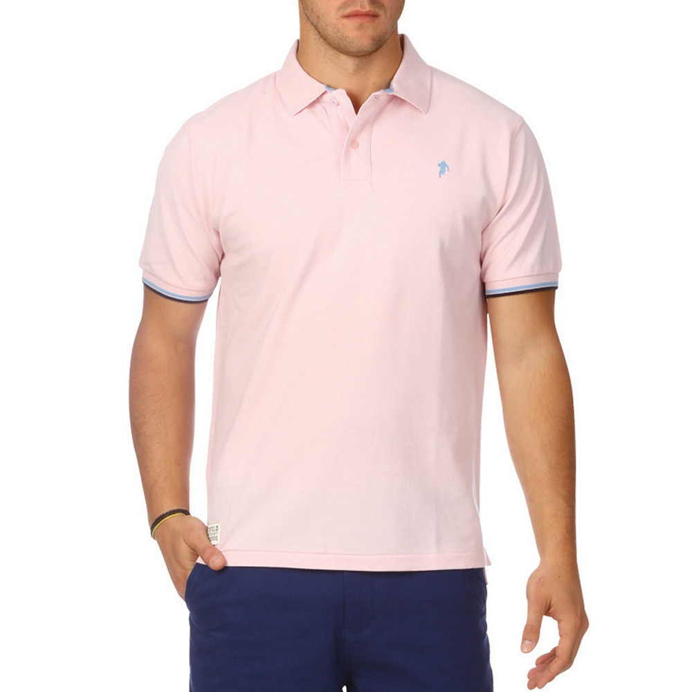 Polo rugby Ruckfield rose clair en coton piqué accompagné de fines rayures contrastées en bas de manche et silhouette de Sébastien Chabal brodée poitrine. Existe en 6 coloris, ce produit est disponible en grande taille jusqu'au 5XL.