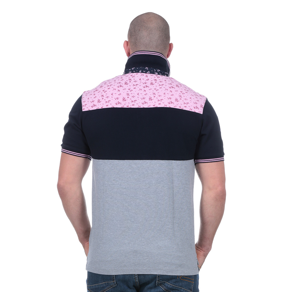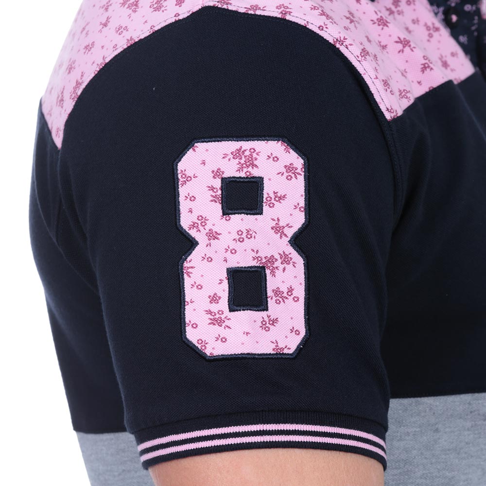 Cet élégant polo conçu en coupé-cousu et très confortable se démarque par ses coloris marine, rose et gris très rugby.