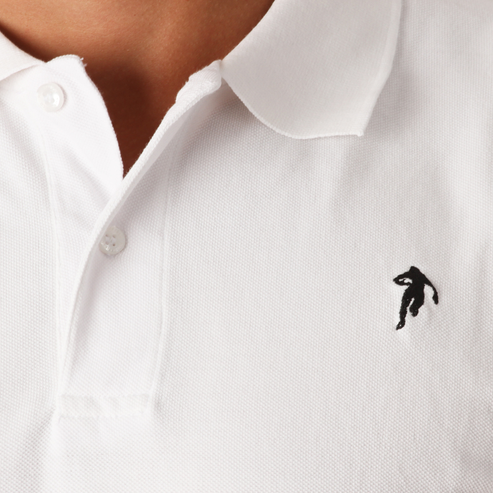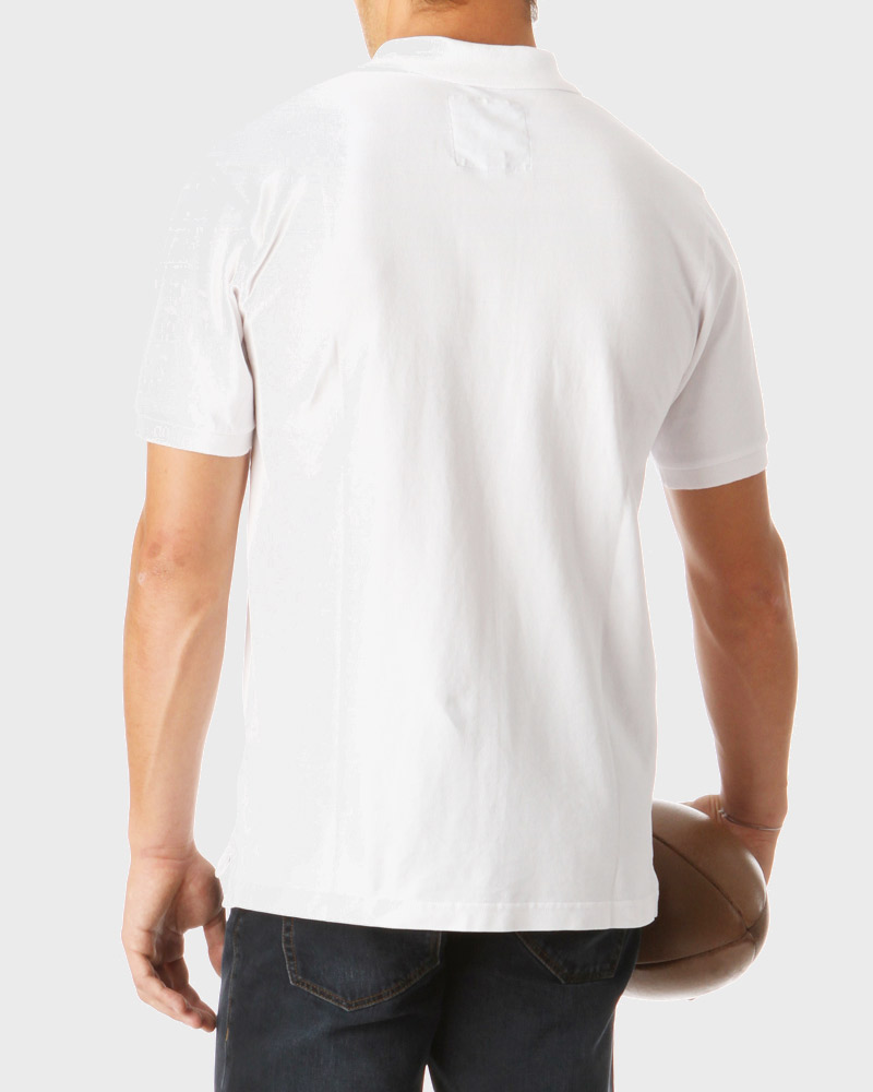 En coton piqué blanc, ce polo rugby a une coupe classique avec un logo brodé noir sur la poitrine.
