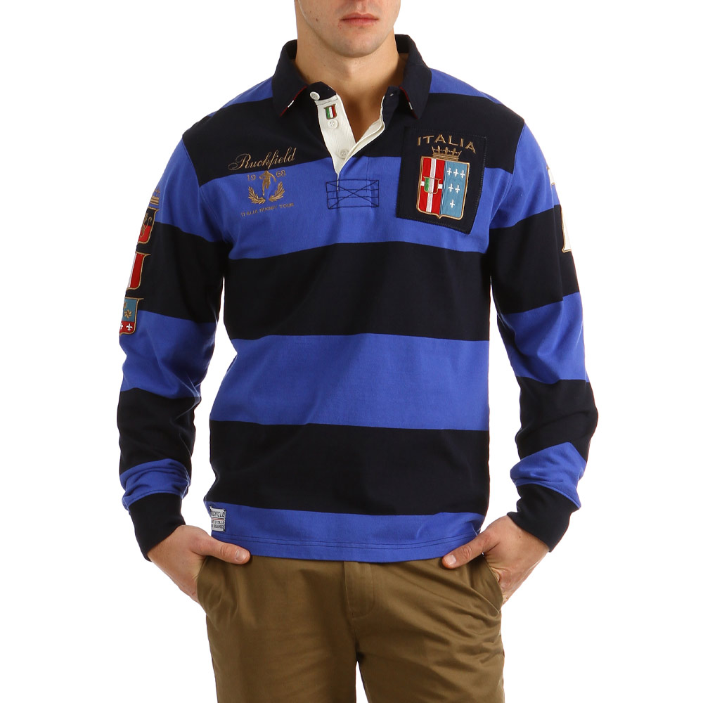 Signé Mauro Bergamasco, ce polo rugby 100% coton rayé bleu royal et marine met l'Italie à l'honneur avec ses broderies poitrine, manches et intérieur du col pour un look chic et décontracté.