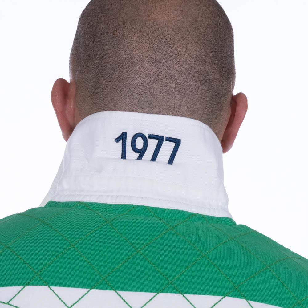 Ses larges bandes vertes et blanches et les surpiqures matelassées sur les épaules ne diront pas le contraire !
