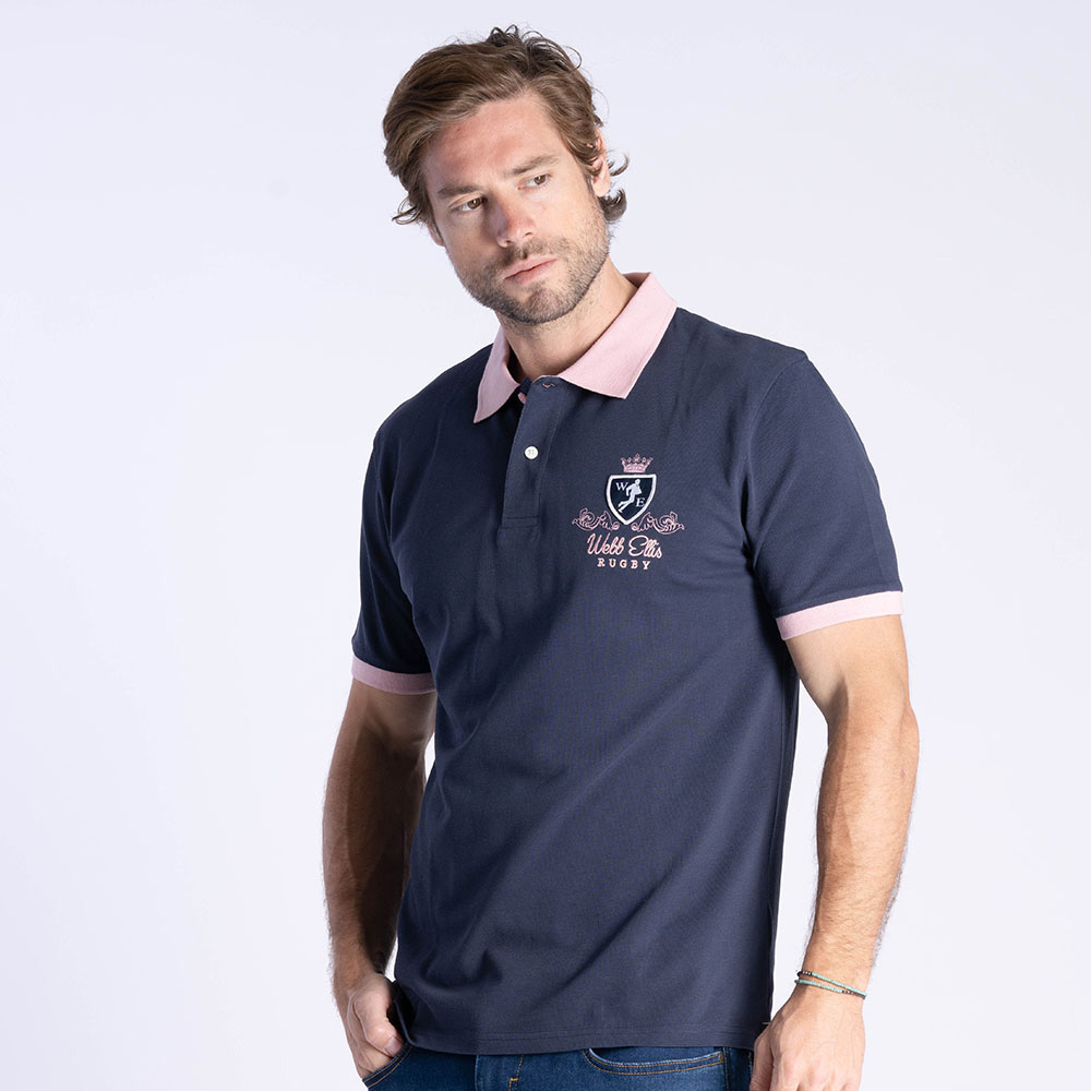 Son coloris bleu marine intemporel est rehaussé par un col et des bords de manches rose apportant une touche moderne et distinctive tout en restant fidèle à l’esprit Rugby Legend.