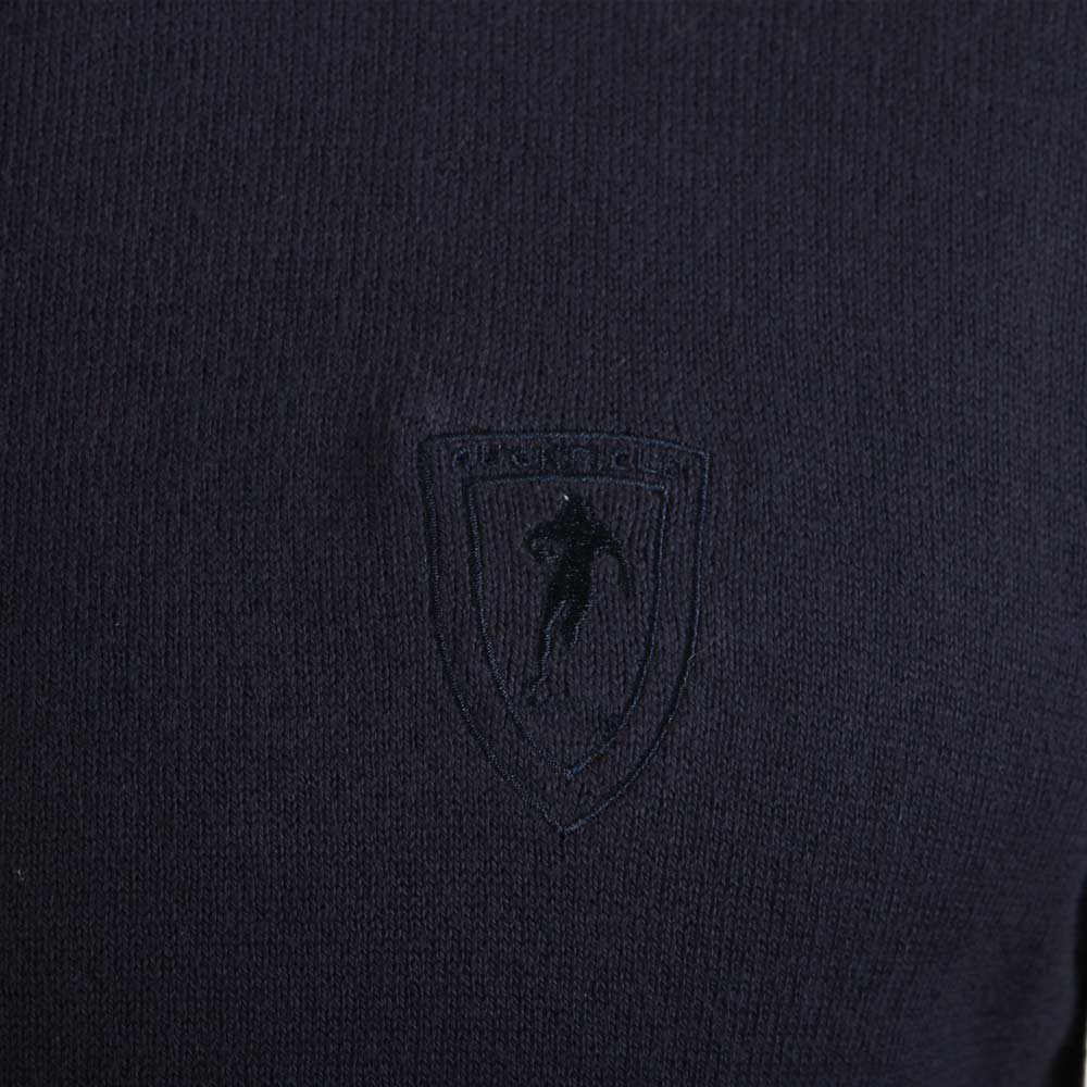 Sport et élégant, ce pull rugby à col rond est idéal sur un pantalon bordeaux.