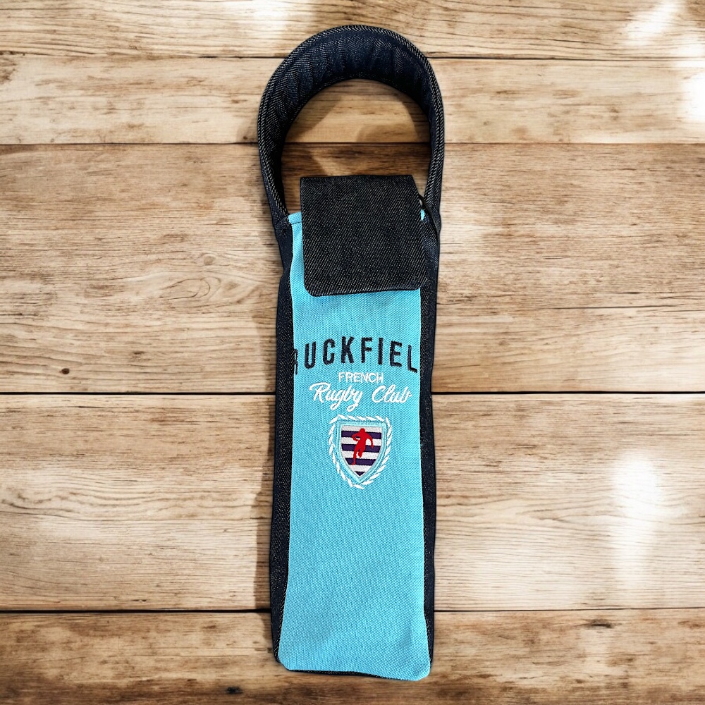 Chaque pièce est fabriquée à la main en utilisant des textiles Ruckfield récupérés, tels que des polos, des t-shirts ou des jeans recyclés, donnant une seconde vie à des habits autrement destinés à être jetés. Cette housse robuste et résistante est idéale pour transporter et protéger vos boules de pétanque, tout en affirmant votre choix d’un produit durable et respectueux de l'environnement.