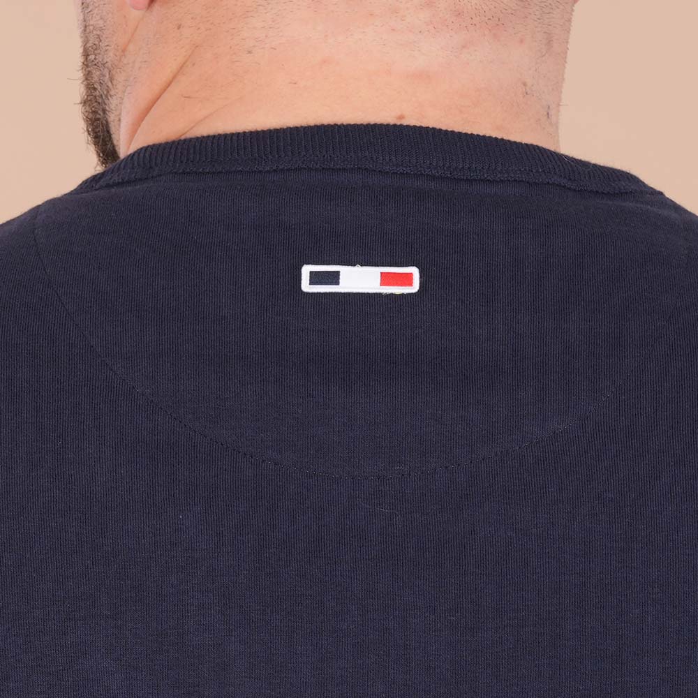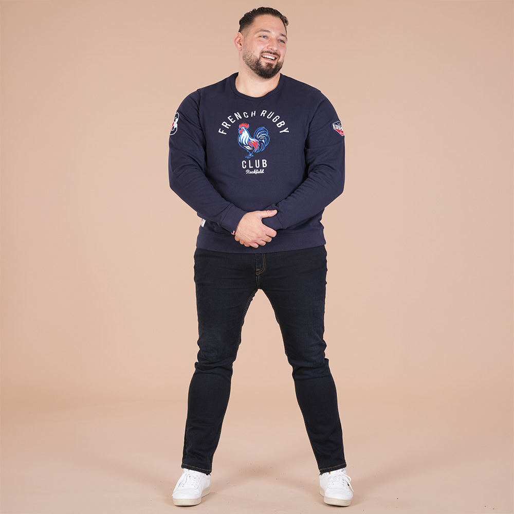 Le design est marqué par une grande broderie sur la poitrine avec l’inscription « Le French Club », accompagnée d’un coq tricolore. Ce visuel apporte une touche dynamique et authentique au vêtement. Sous le motif, une signature discrète Ruckfield vient renforcer l’identité de la marque.