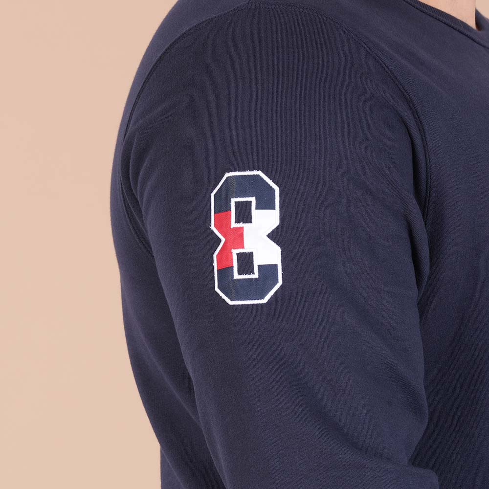 Sur les manches, un écusson inspiré de l’univers rugby ajoute du caractère et rappelle les valeurs sportives chères à la marque : esprit d’équipe, puissance et élégance ainsi que le "8" propre à Sébastien Chabal.