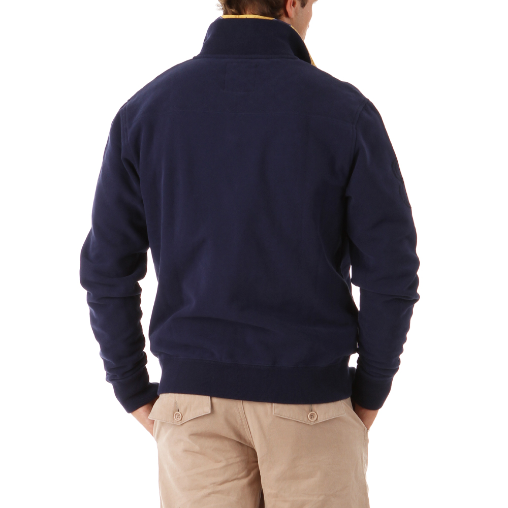Sweat molleton zippé marine, 100% coton.Poches et fermeture zippées. Broderies et écussons poitrine. Disponible en grande taille (jusqu'au 5XL)