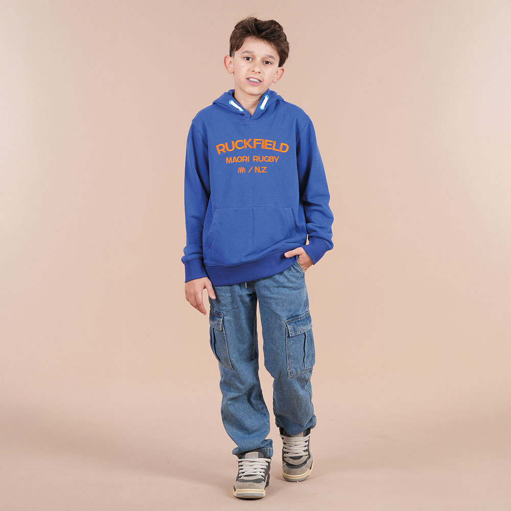 Affichez un look sportif et décontracté avec ce sweat à capuche bleu signé Ruckfield. Conçu en coton doux et confortable. Sur la poitrine, un imprimé "Ruckfield Maori Rugby IWI / NZ" en orange vif apporte une touche dynamique et identitaire. La poche kangourou pratique permet de garder vos mains au chaud ou d’y glisser vos effets personnels.