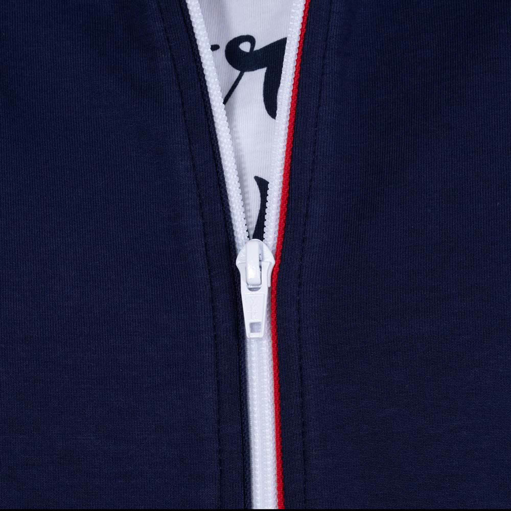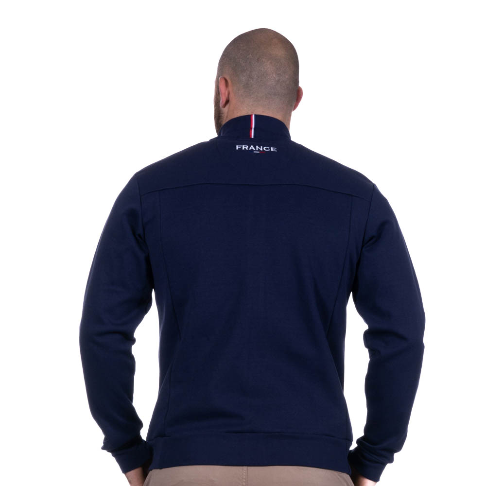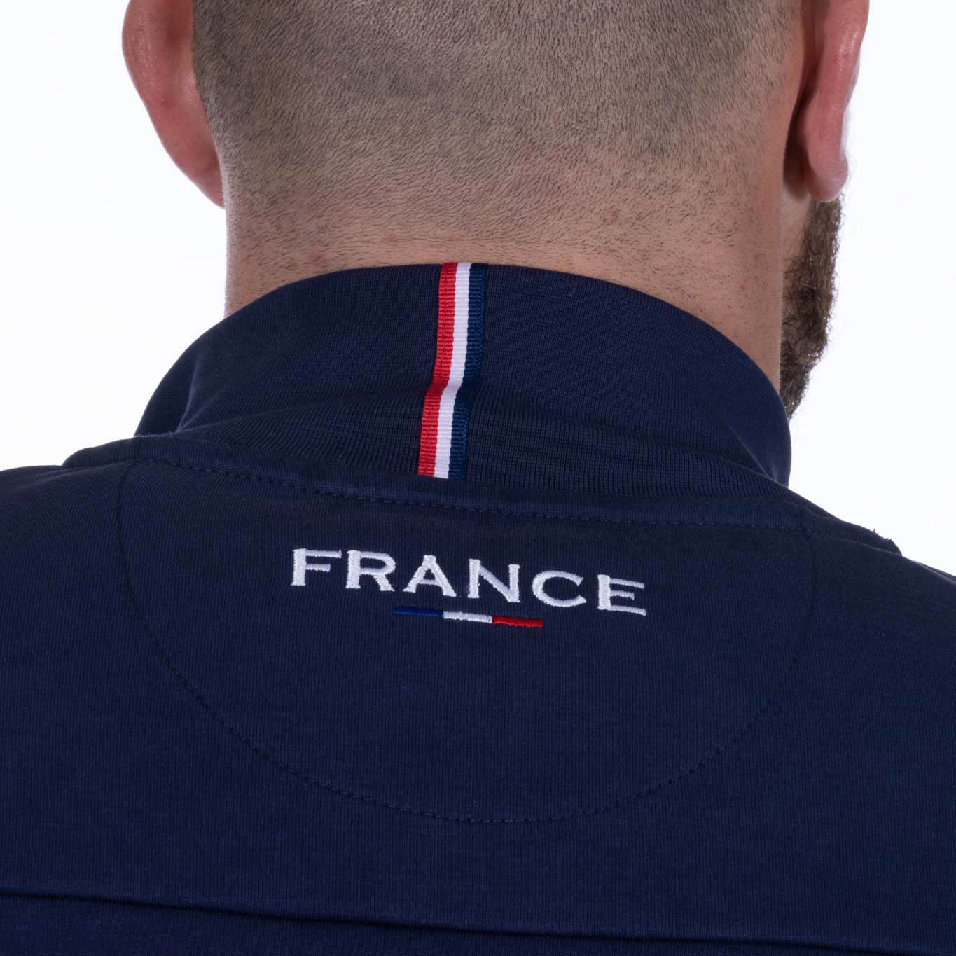 Ce sweat zippé French Rugby Club est la pièce idéale pour la mi-saison. Il possède des finitions tricolores au niveau de la fermeture éclair, des 2 poches latérales, et du col. Une broderie est présente sur la poitrine ainsi qu'au niveau de la nuque.