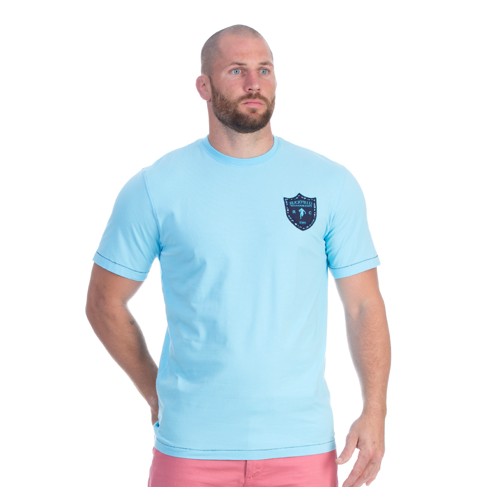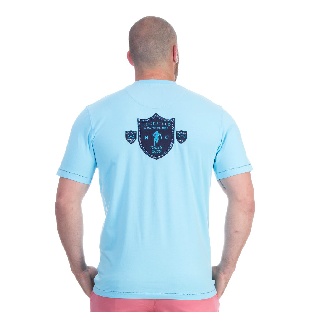 Ce t-shirt confectionné en Jersey de coton affiche un style très printanier avec ses broderies poitrine et dos ainsi que sa couleur bleue turquoise.
