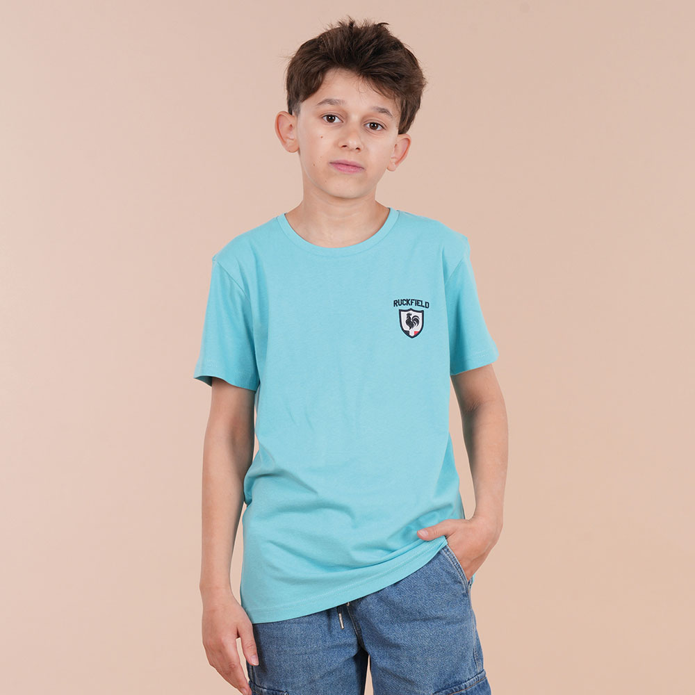 Un t-shirt plein de pep’s pour les jeunes passionnés de rugby ! Ce modèle bleu turquoise met en avant la broderie sur la poitrine ainsi que le dos orné du numéro 8, cher au légendaire Sébastien Chabal. Léger et confortable, il suit les enfants dans toutes leurs aventures, que ce soit sur le terrain ou à l’école.