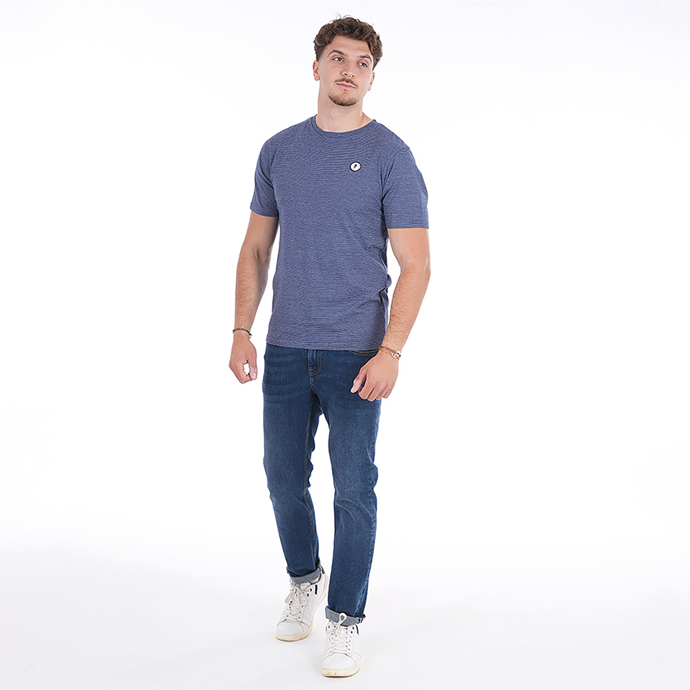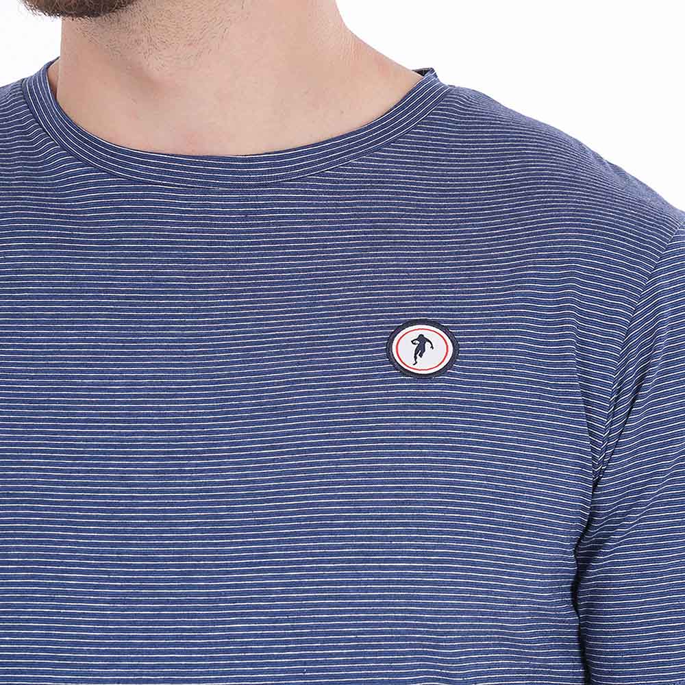 Affichez votre passion pour le rugby avec ce t-shirt à manches courtes aux rayures horizontales bleu et blanc. Il est orné d’un patch brodé sur la poitrine, représentant la silhouette emblématique de Sébastien Chabal. Confortable et stylé, il s’adapte parfaitement à un look casual chic.