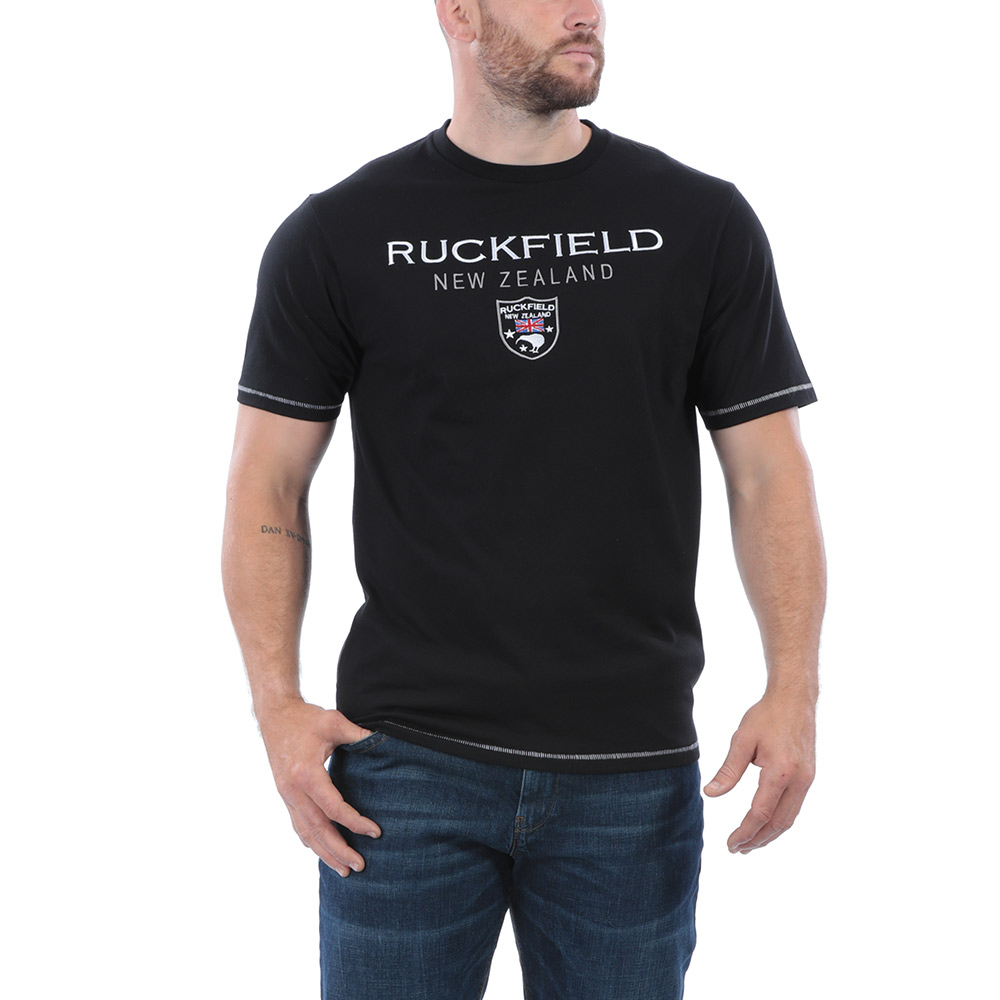 Un t-shirt manches courtes en coton mélangé noir pour plus de confort et d'aisance avec ses broderies Nouvelle Zélande pour le plus grand plaisir des amateurs de rugby.