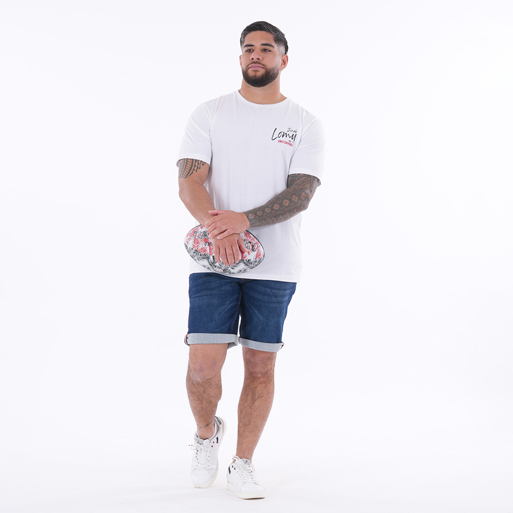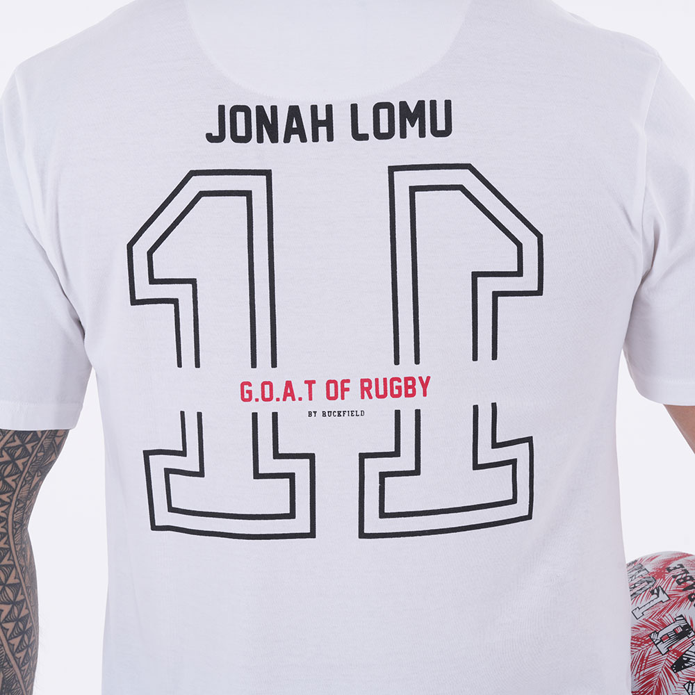Optez pour ce t-shirt à manches courtes en jersey de coton organique* rehaussé par une sérigraphie sur la poitrine et dans dos du thème Jonah LOMU ! Le coloris blanc intemporel complètera vos tenues de la saison, à associer avec un bermuda de couleur ou en jean également pour une tenue plus décontractée avec 1 short rouge ou noir.
