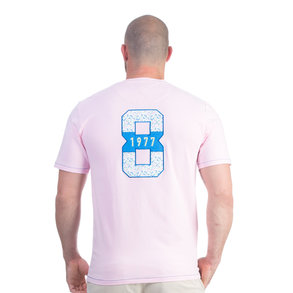 Ce tee-shirt en 100% coton vous assurera un confort, une légèreté absolue. Avec la tendance du rose qui s'affirme vous serez séduit par ce tee-shirt, qui se pare d'un magnifique 8 à motif fleuri sur le dos, ainsi que d'une broderie sur le torse.