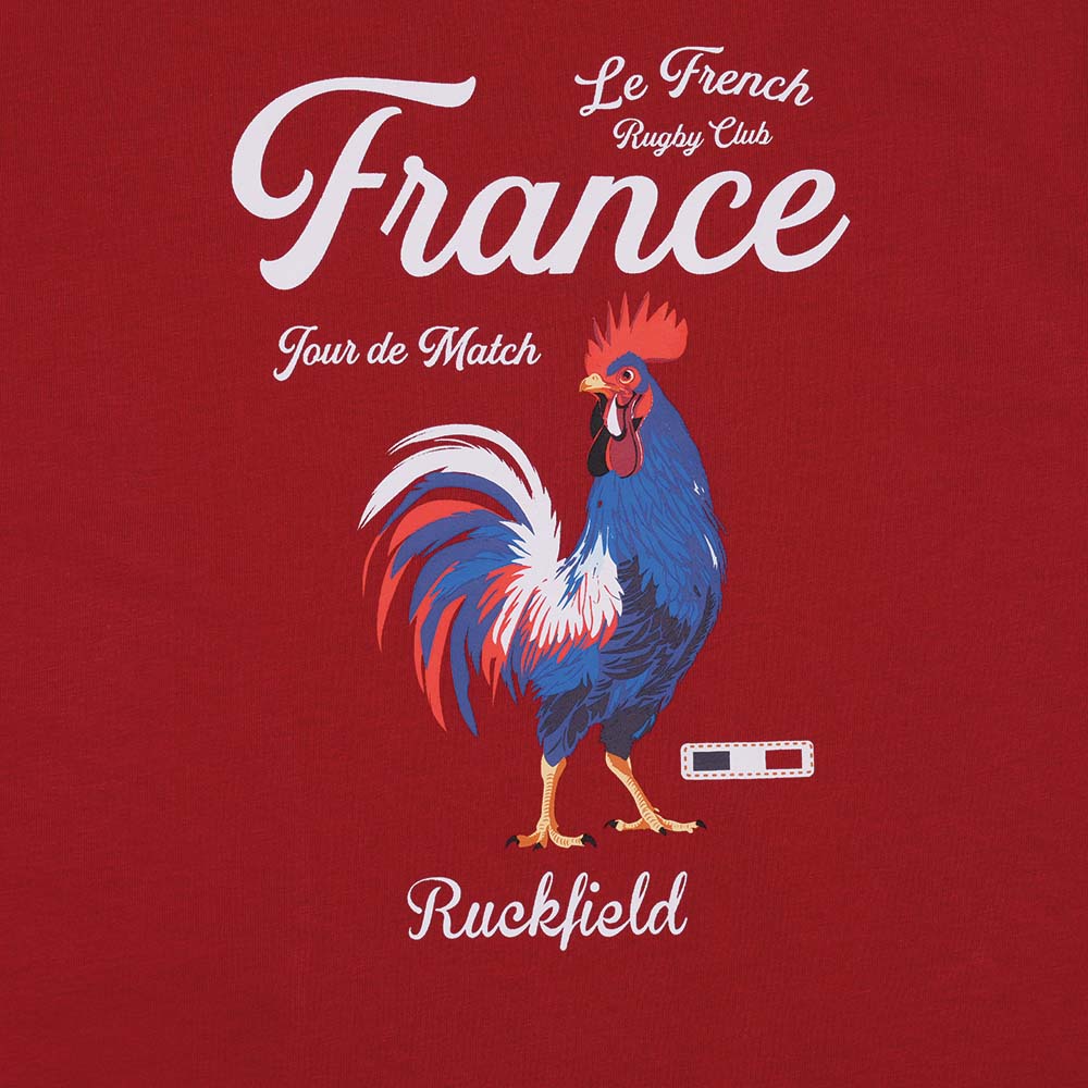 Ce t-shirt enfant se distingue par son look dynamique et son inspiration sportive. Sa coupe classique et son col rond en font une pièce facile à porter au quotidien. Un patch discret sur la poitrine vient signer le modèle avec élégance. Au dos, un visuel original met à l’honneur l’esprit français avec un coq emblématique accompagné de l’inscription “France – Le French Rugby Club”, pour une touche à la fois ludique et affirmée.