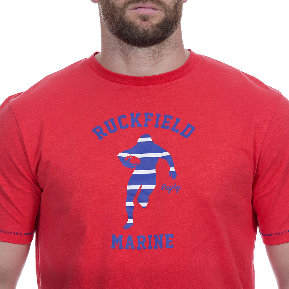 Adoptez la tendance estivale avec ce t-shirt manches courtes en pur coton rouge agrémenté d'une sérigraphie Rugby marine sur la poitrine.