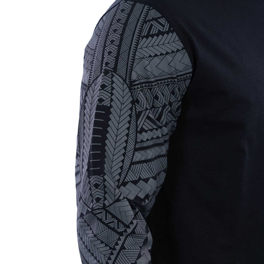 Laissez-vous séduire par ce t-shirt à manches longues et sa manche droite imprimée maori. Cette pièce donnera du caractère à votre dressing. On retrouve aussi une broderie Ruckfield sur la poitrine.