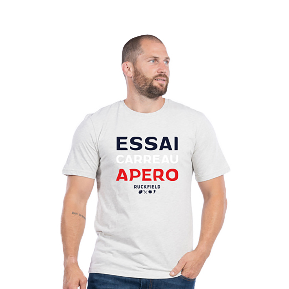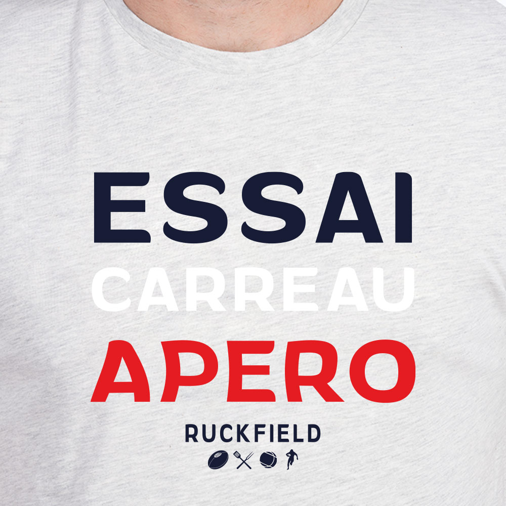 T-shirt Ruckfield "essai, carreau, apéro" gris clair