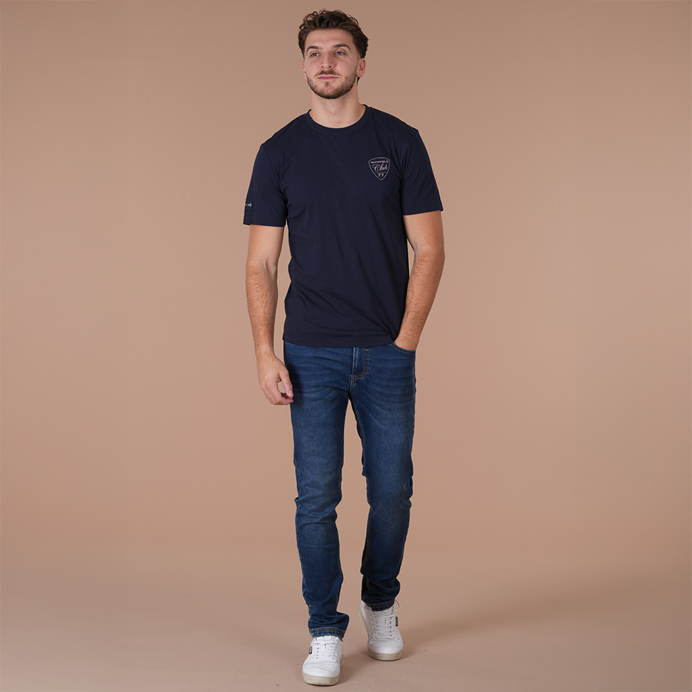 Affirmez votre style avec ce t-shirt bleu marine Ruckfield. Confectionné dans une matière douce et confortable, il est idéal pour un usage quotidien.
