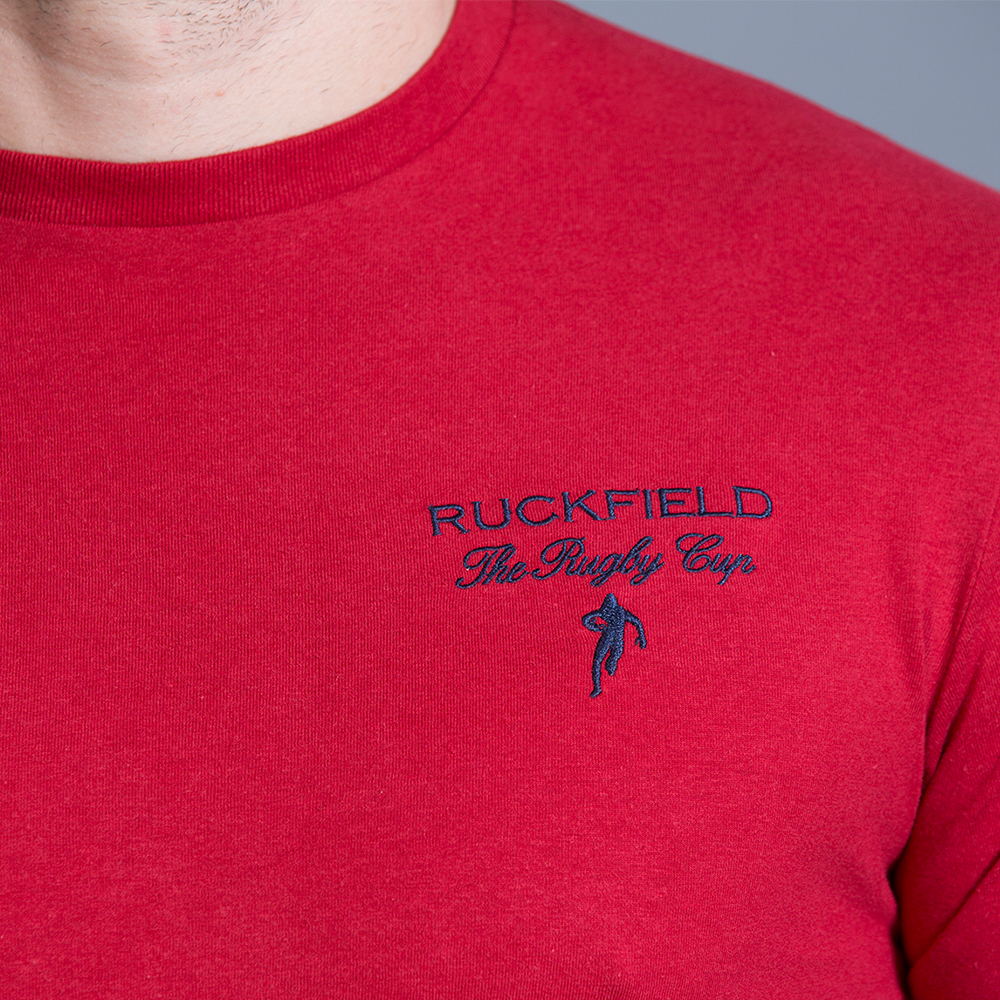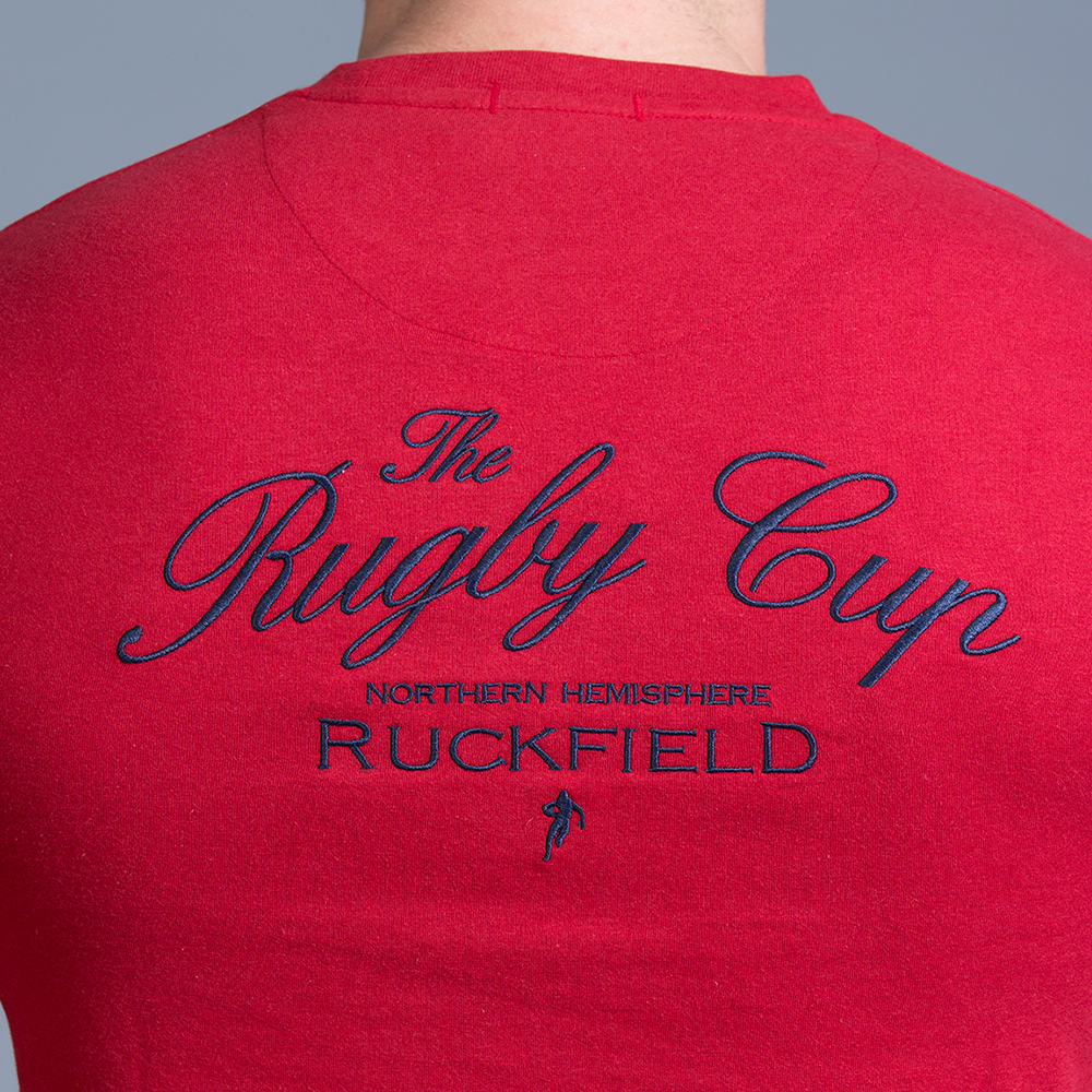 Tee-shirt manches courtes confectionné dans un coton rouge rehaussé d'une broderie sur le thème Rugby cup. Ce modèle s'imposera et se mixera à tous vos basiques!