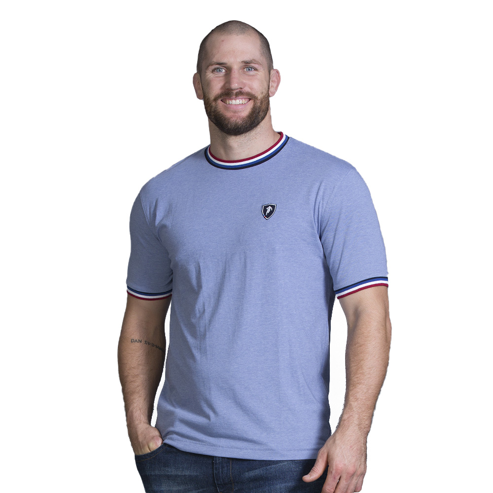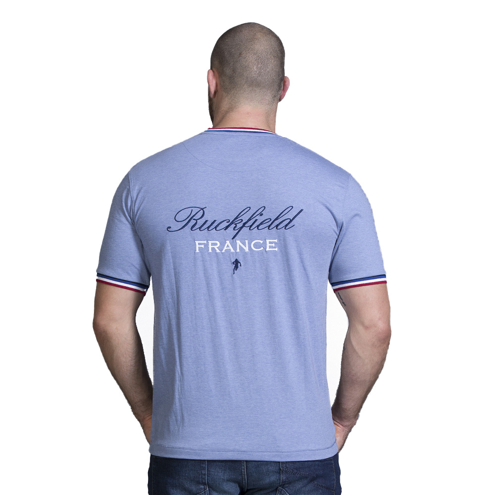 Adoptez la Ruckfield attitude avec ce t-shirt bleu en coton mélangé, ses broderies du FRC et son col rond tricolore. Effet garanti !