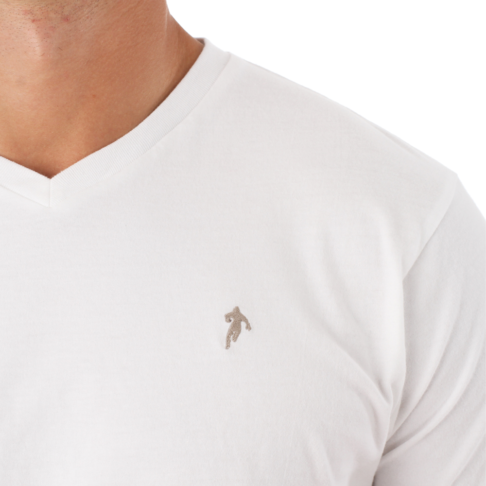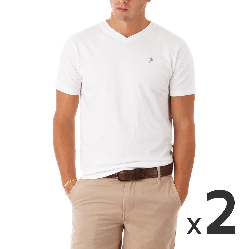 Lot de 2 T-shirts col V manches courtes uni blanc, 95% coton 5% élasthane. Silhouette Sébastien Chabal, brodée poitrine