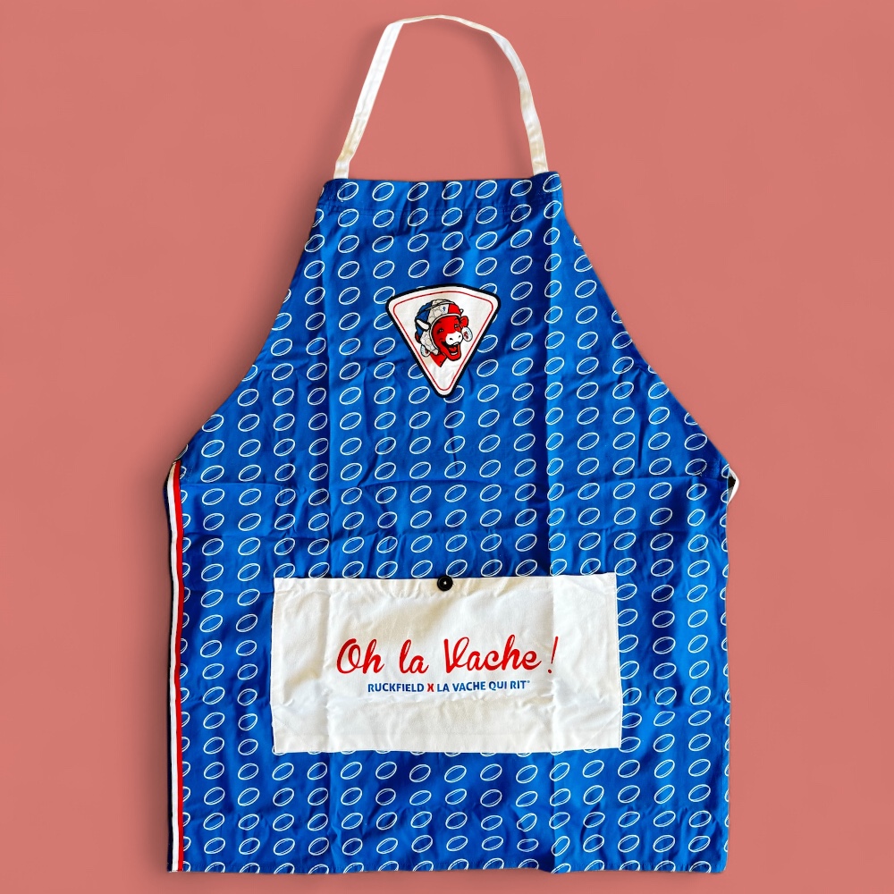 Ajoutez une touche de sportivité et d'humour à votre cuisine avec ce set de tablier et torchon signé Ruckfield x Vache qui Rit. Un duo à la fois pratique et original, parfait pour les amateurs de rugby et les fans de la célèbre marque.