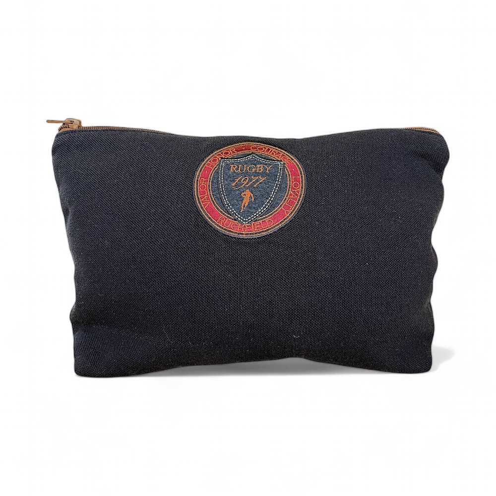 Matériaux Recyclés : Chaque trousse est confectionnée à partir de tissus d’invendus Ruckfield récupérés, réduisant ainsi l'impact écologique et contribuant à une mode durable.
