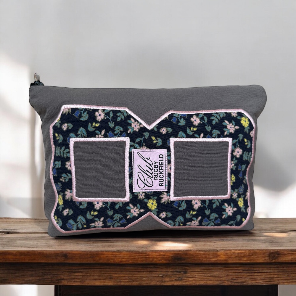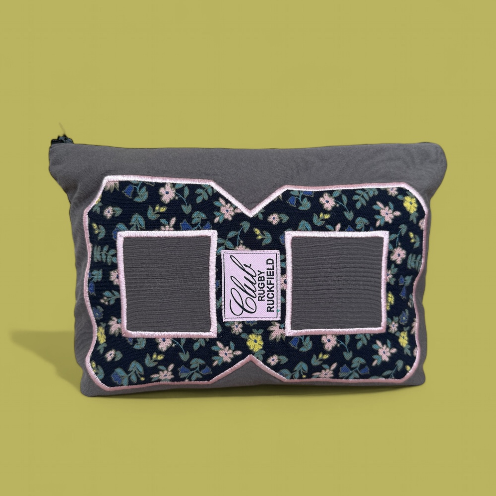 Matériaux Recyclés : Chaque trousse est confectionnée à partir de tissus d’invendus Ruckfield récupérés, réduisant ainsi l'impact écologique et contribuant à une mode durable.