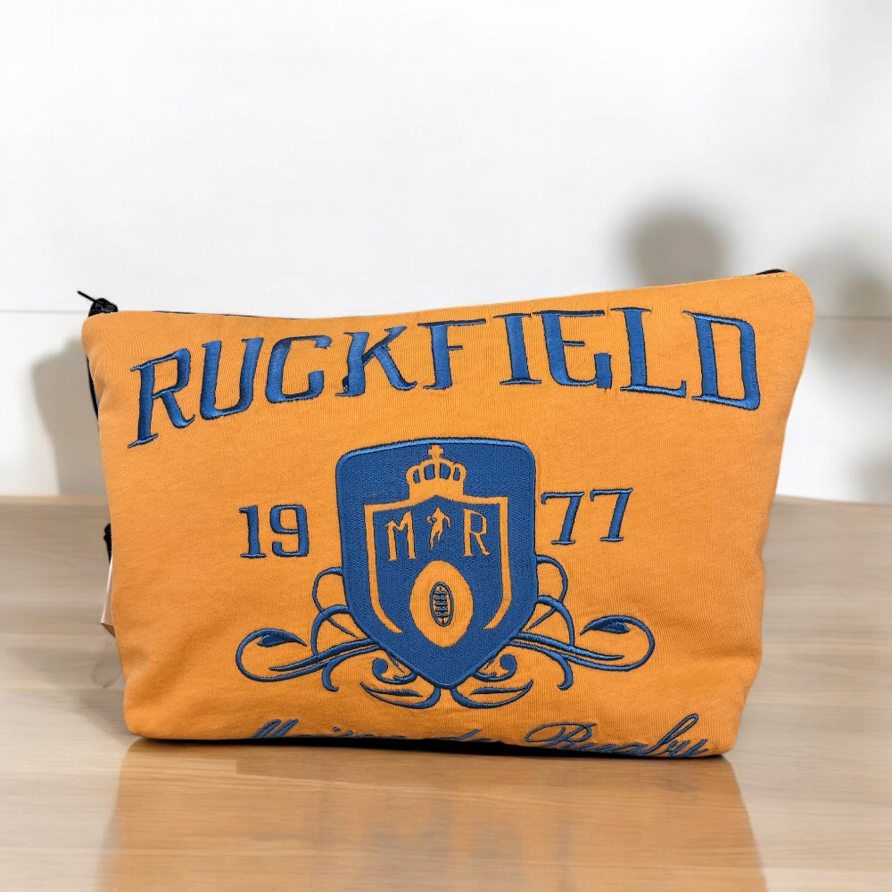 Matériaux Recyclés : Chaque trousse est confectionnée à partir de tissus d’invendus Ruckfield récupérés, réduisant ainsi l'impact écologique et contribuant à une mode durable.