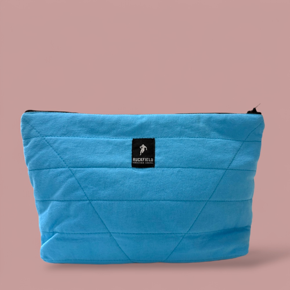 Matériaux Recyclés : Chaque trousse est confectionnée à partir de tissus d’invendus Ruckfield récupérés, réduisant ainsi l'impact écologique et contribuant à une mode durable.