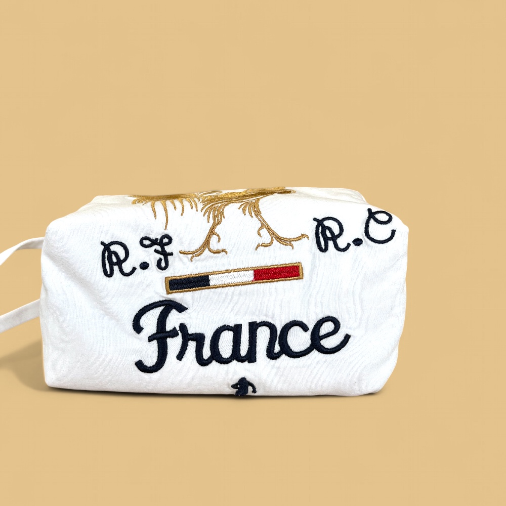 Engagement Écologique : En choisissant notre trousse de toilette en upcycling, vous participez à la réduction des déchets textiles et soutenez une mode plus responsable.