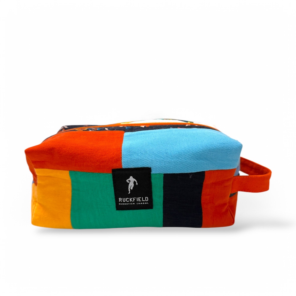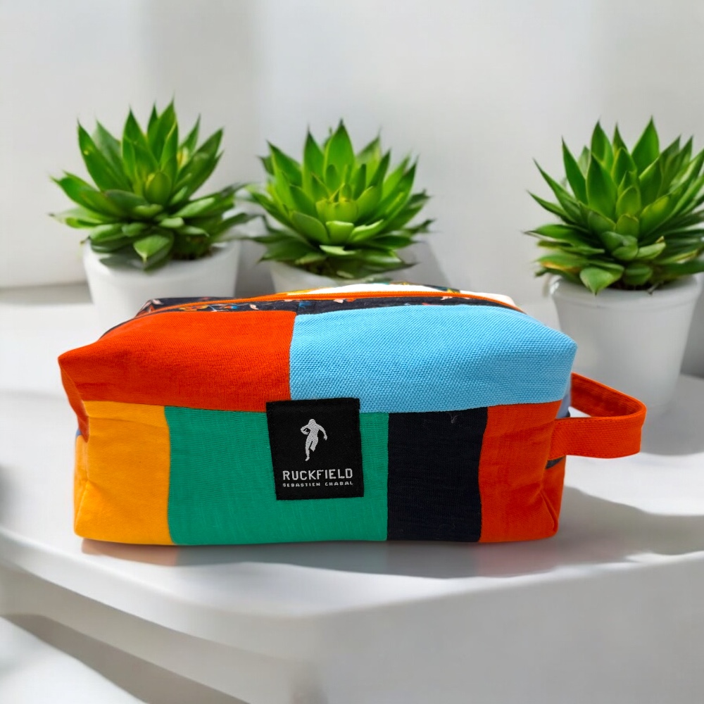 Matériaux Recyclés : Chaque trousse est confectionnée à partir de tissus d’invendus Ruckfield récupérés, réduisant ainsi l'impact écologique et contribuant à une mode durable.